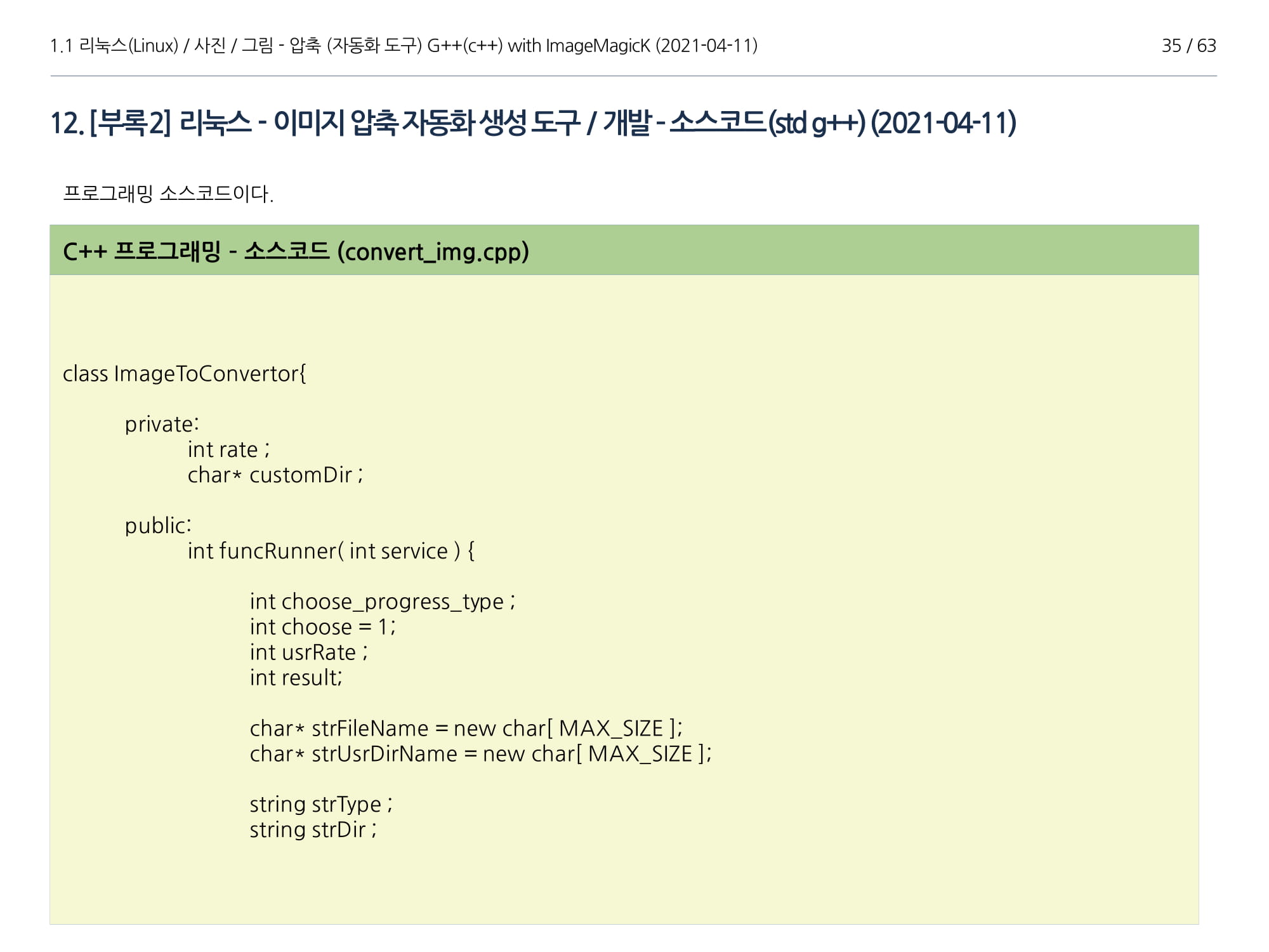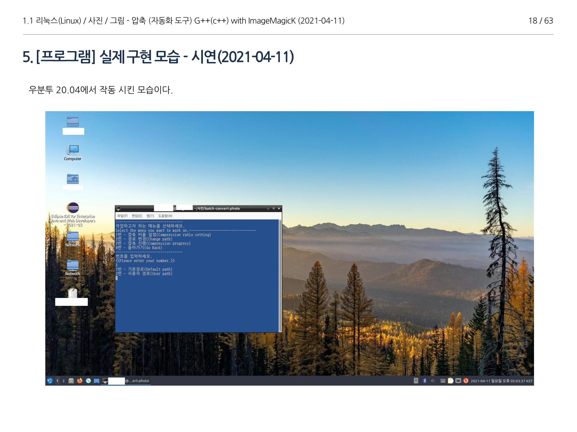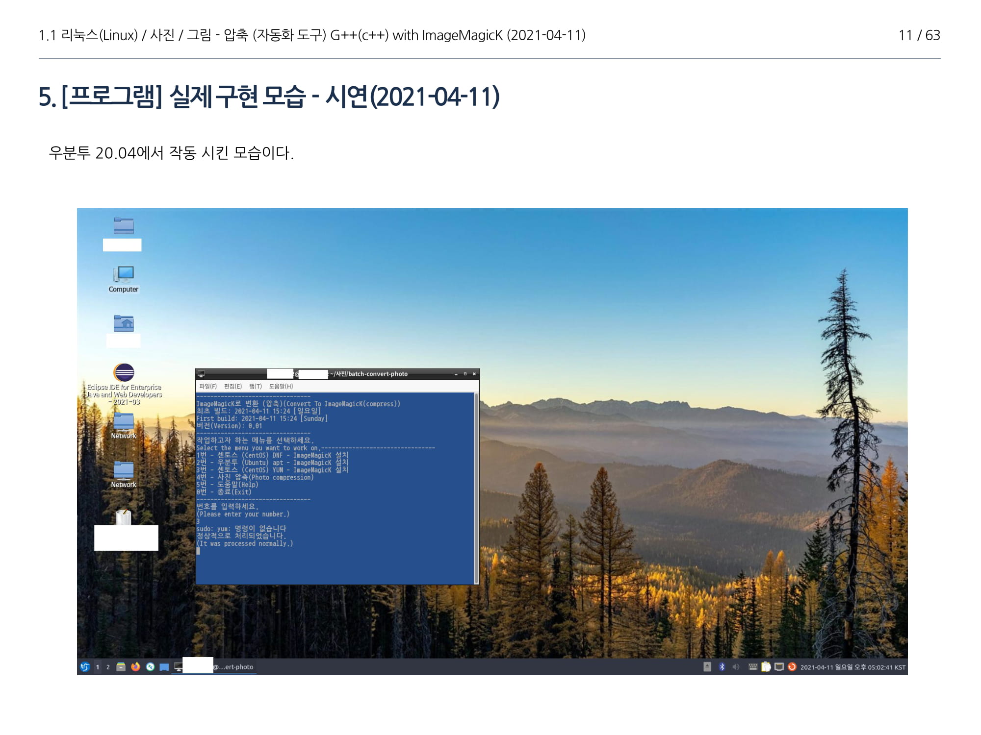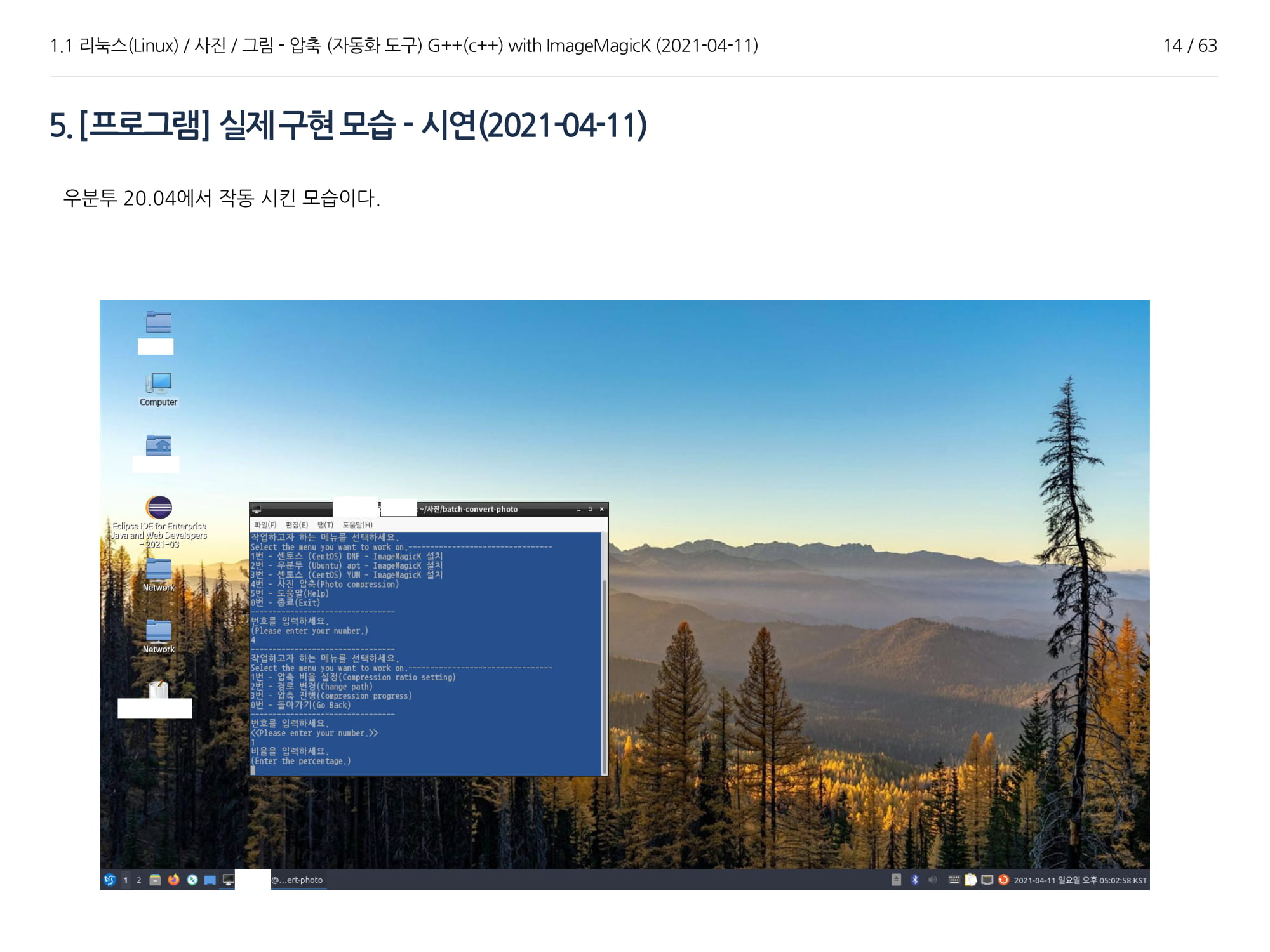 | [GNU - C, C++] 리눅스(Linux) - 사진 압축 자동화 도구(g++, 쉘(Shell)) (2/2), 2021-04-11 21:43 |