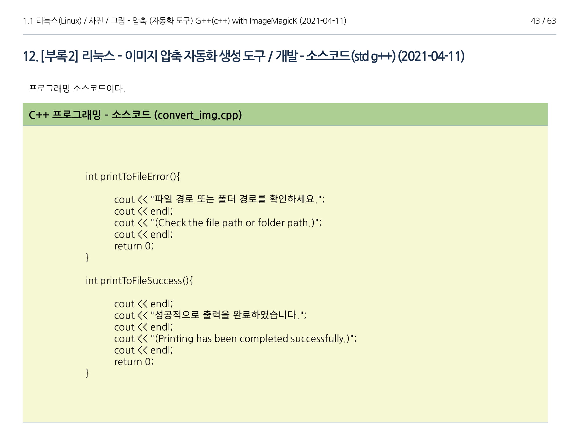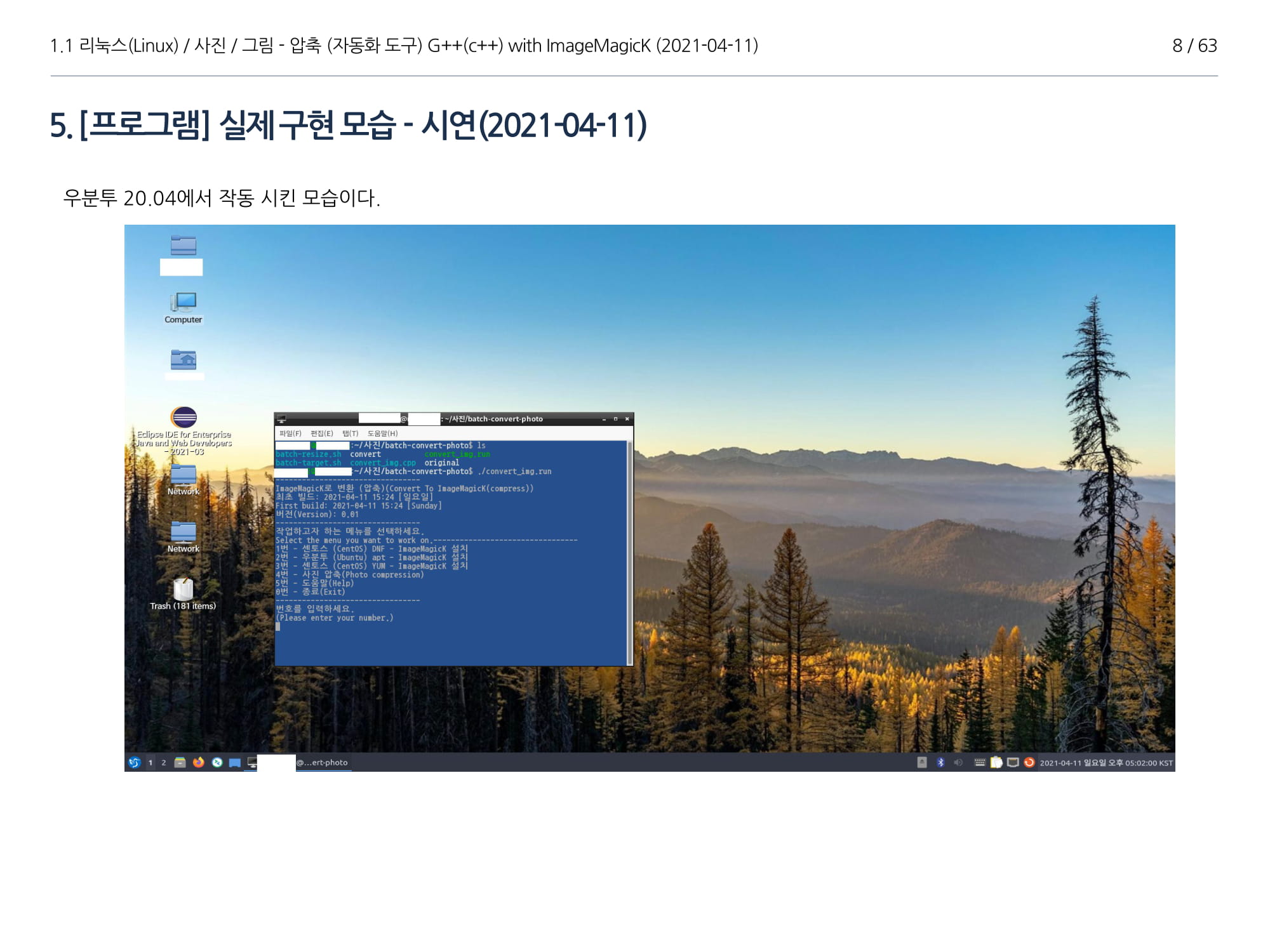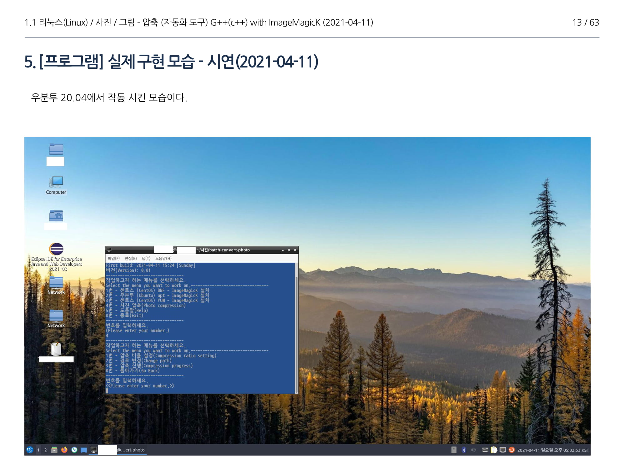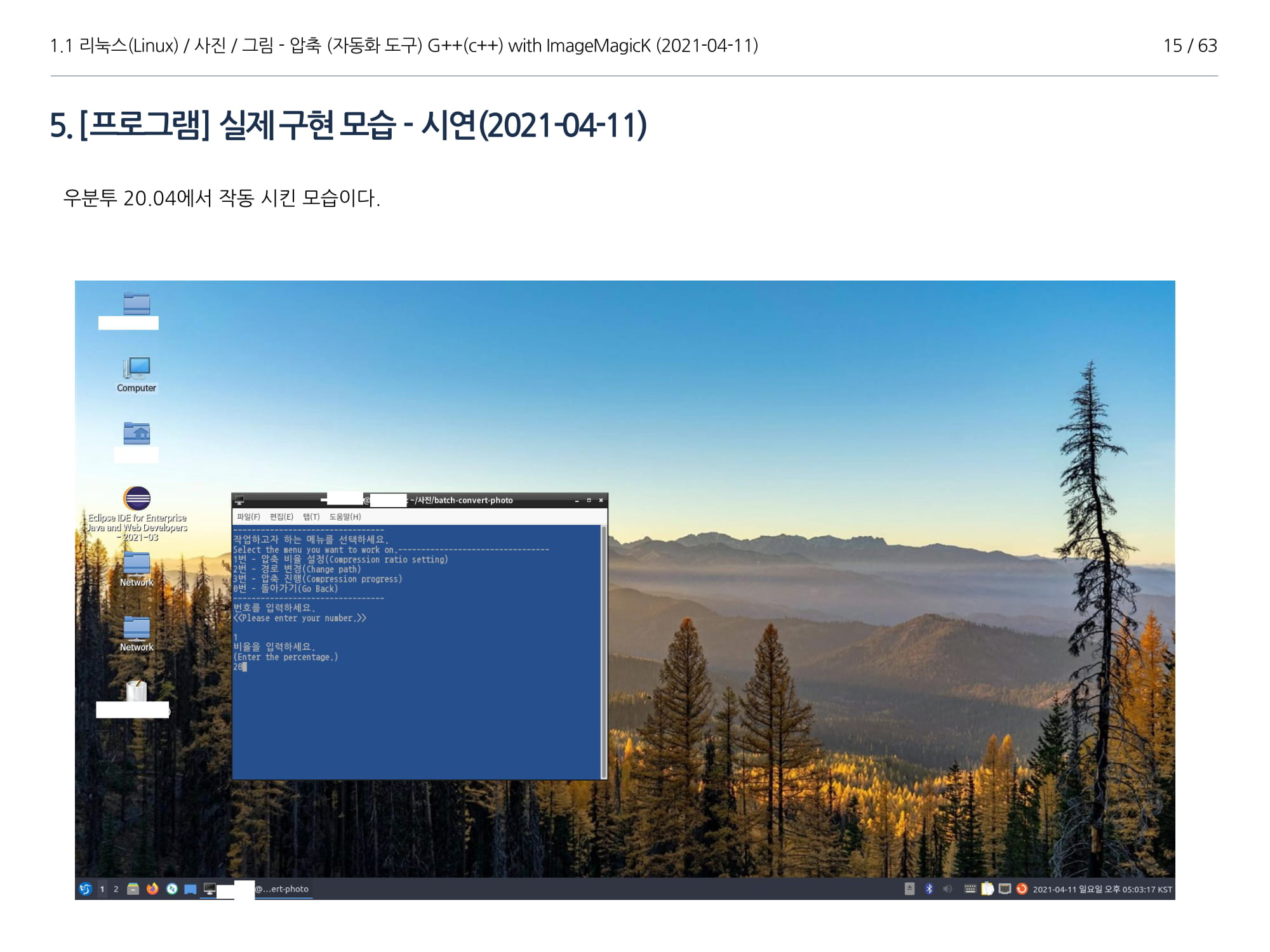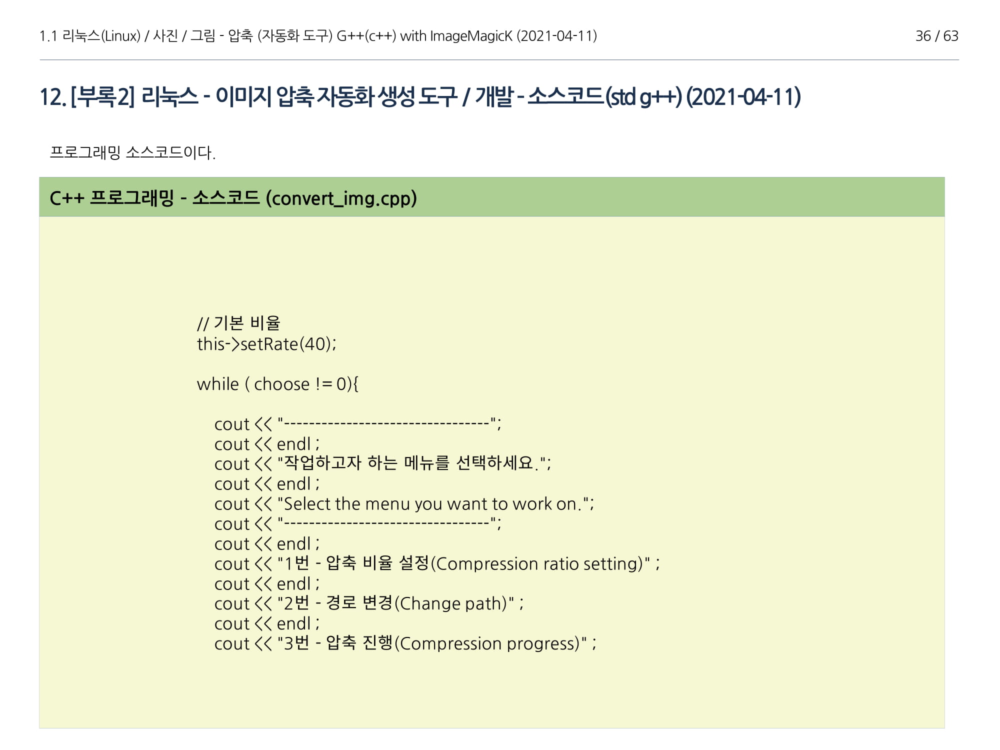 | [GNU - C, C++] 리눅스(Linux) - 사진 압축 자동화 도구(g++, 쉘(Shell)) (2/2), 2021-04-11 21:43 |