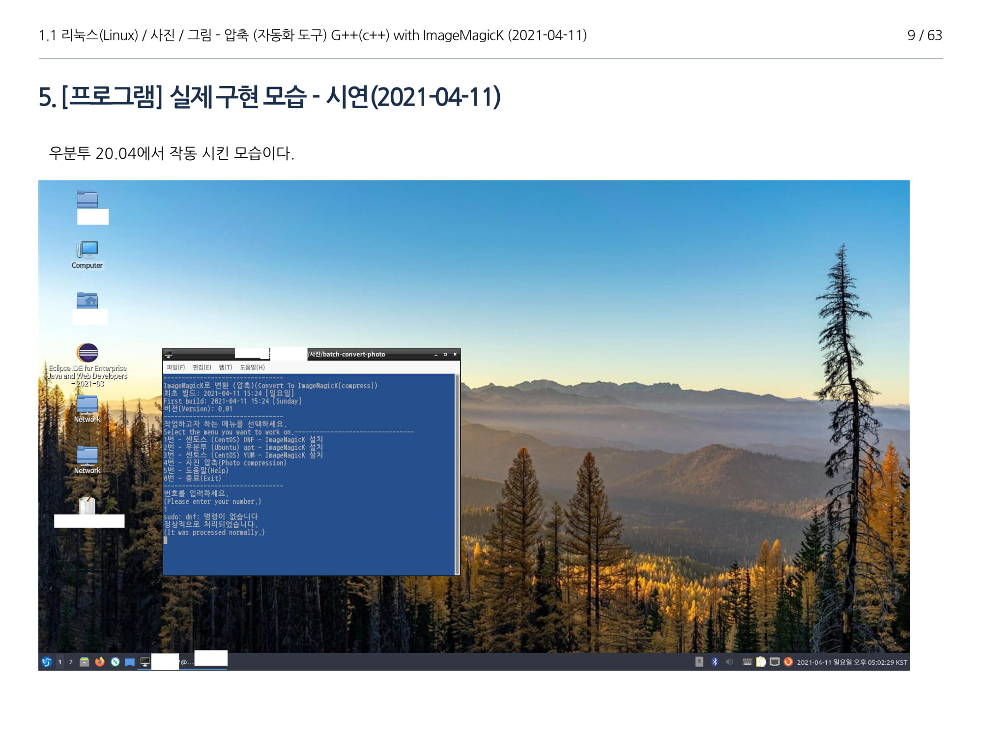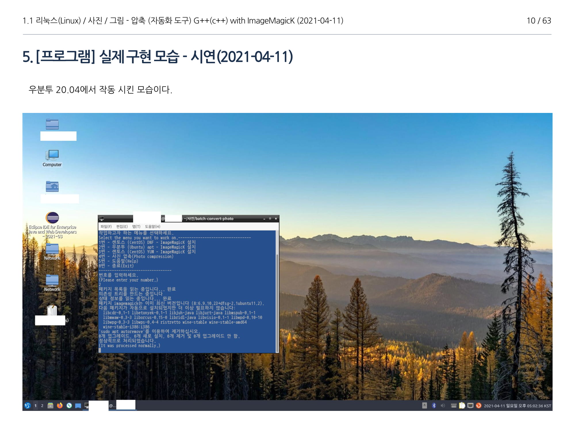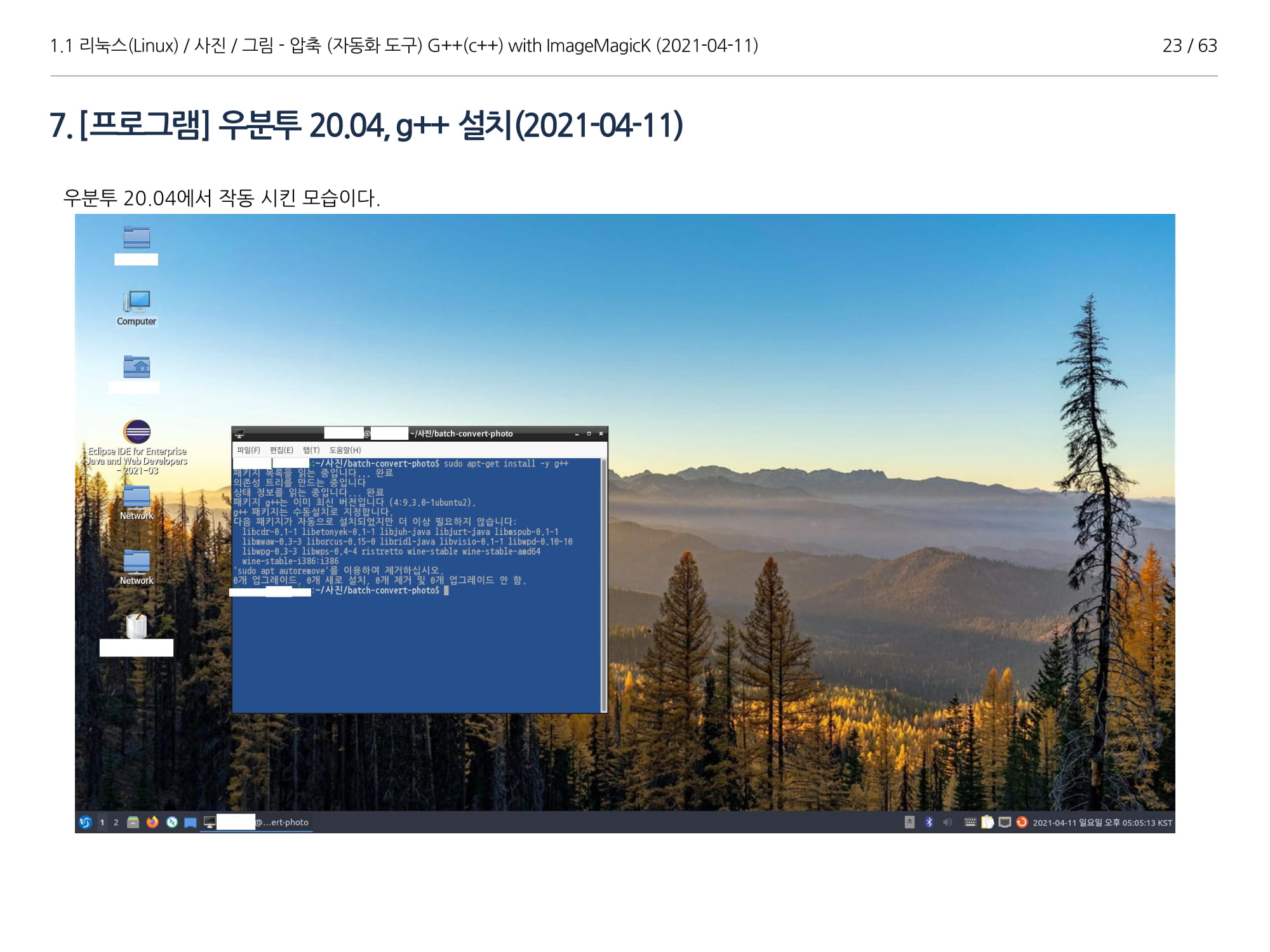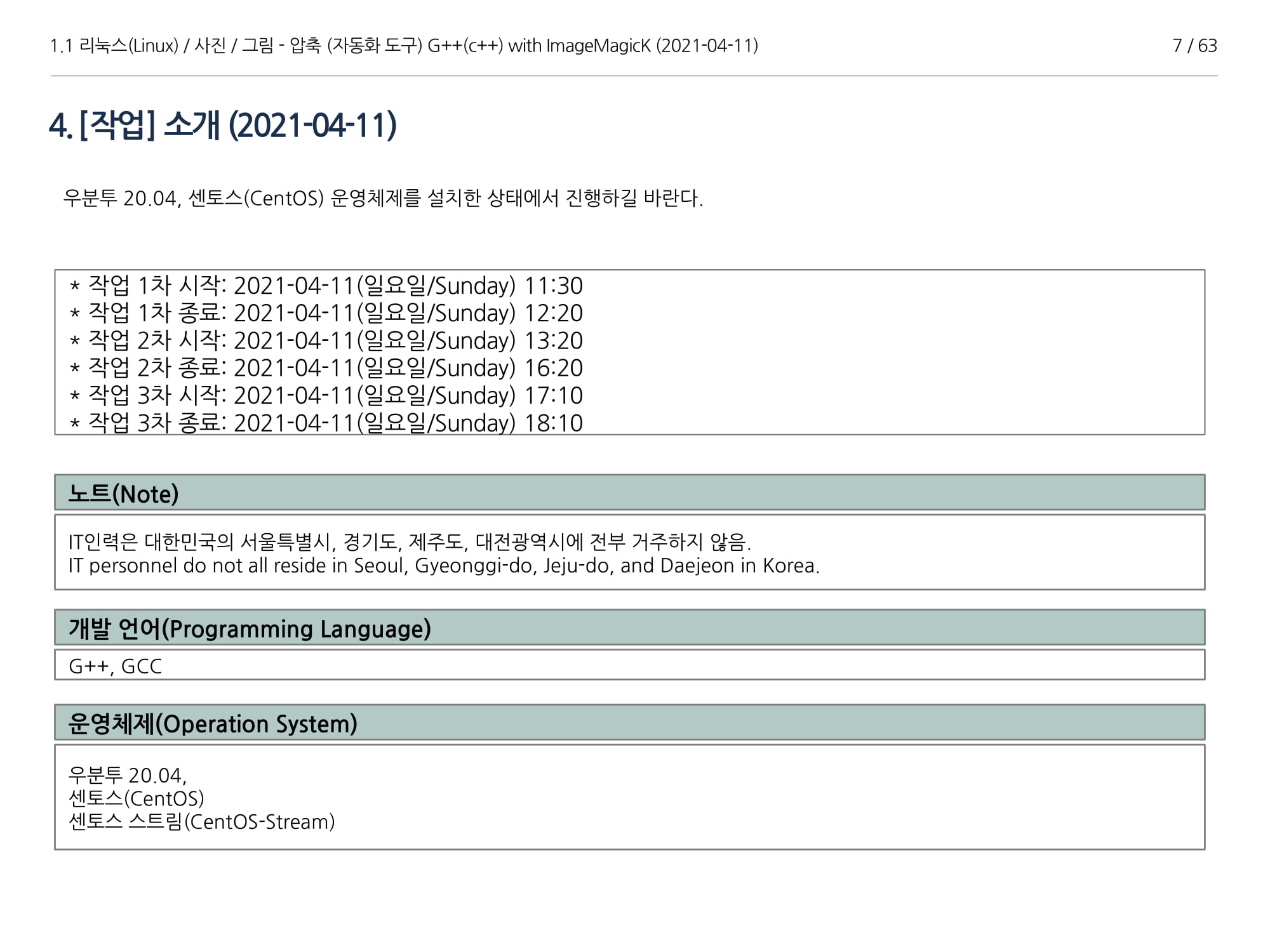 | [GNU - C, C++] 리눅스(Linux) - 사진 압축 자동화 도구(g++, 쉘(Shell)) (2/2), 2021-04-11 21:43 |