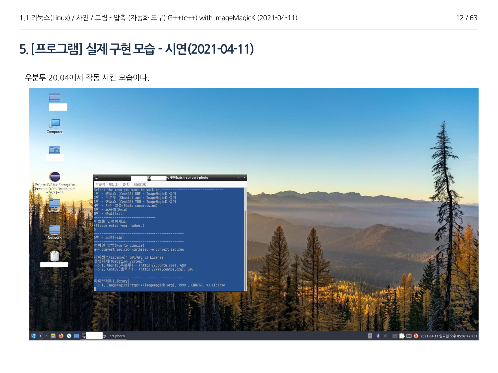 이번에 소개할 내용은 리눅스에서 g++ 프로그래밍으로 ImageMagicK을 활용하여 사진 압축 자동화 도구에 대해서 소개하고자 한다.