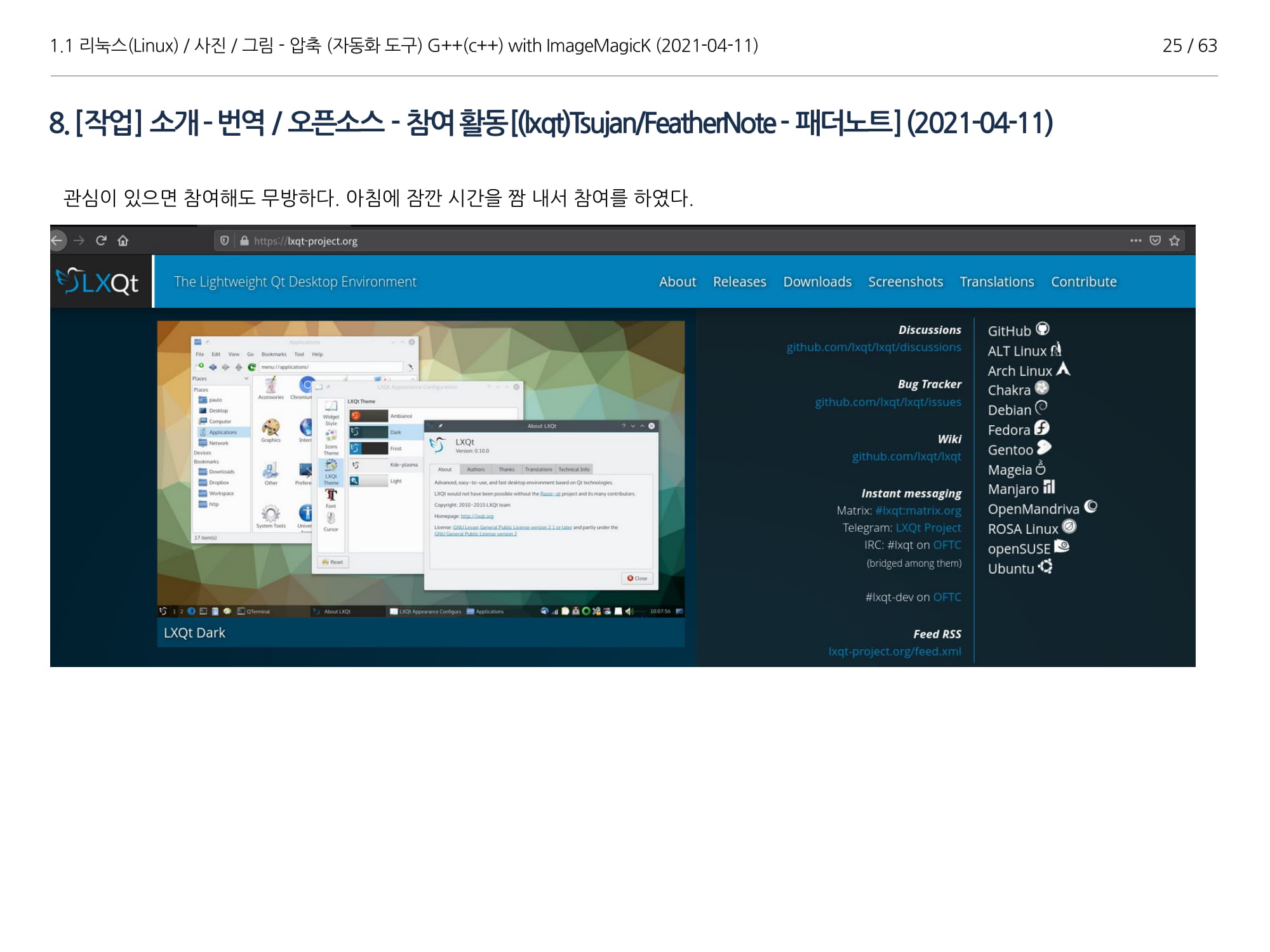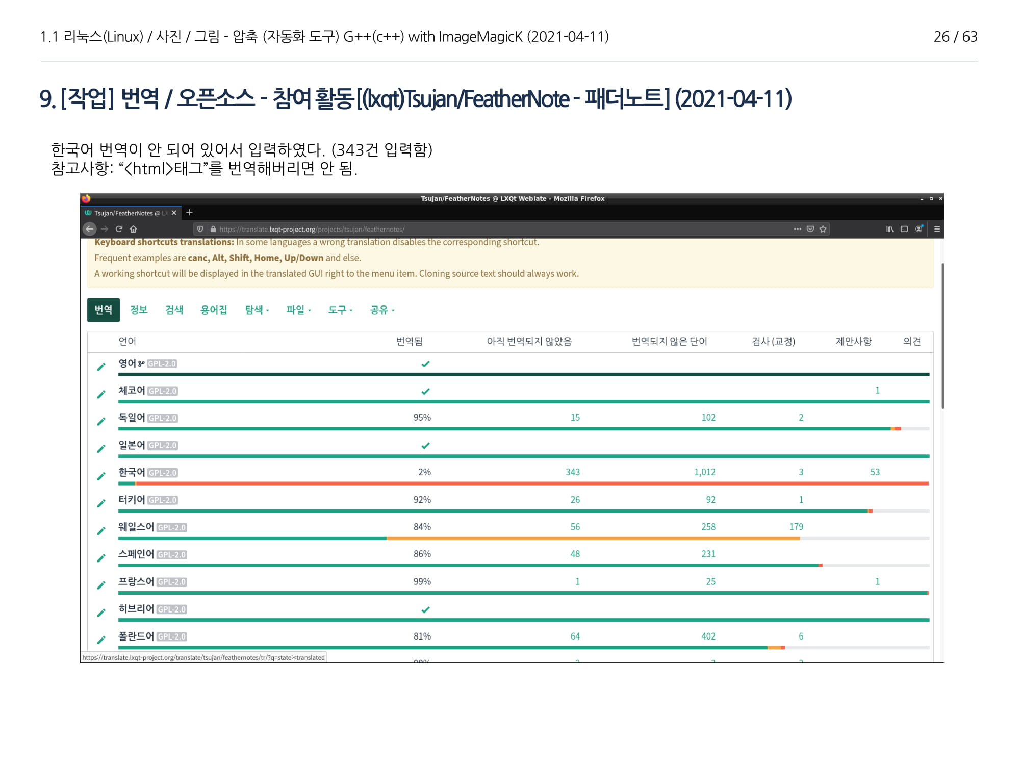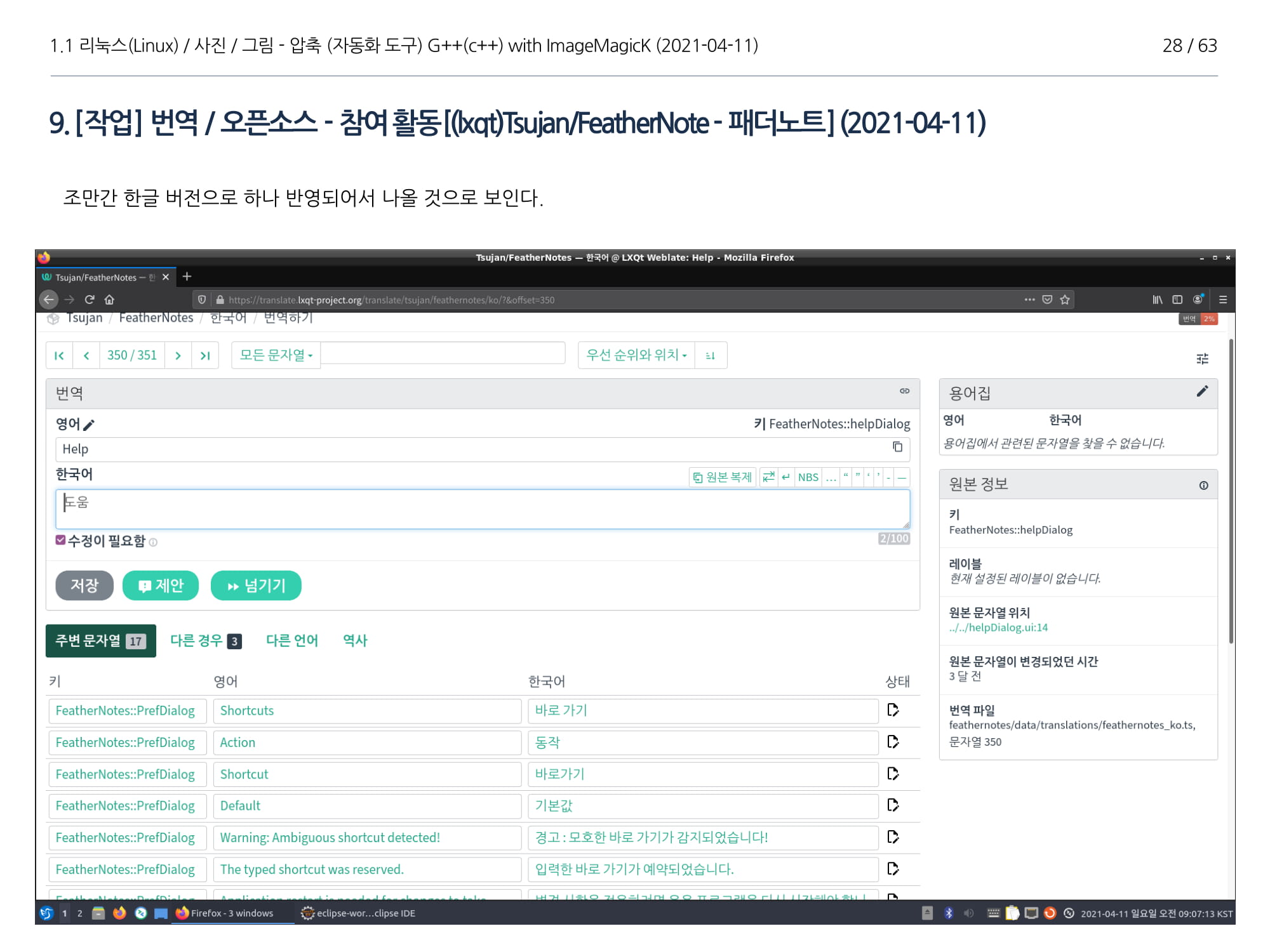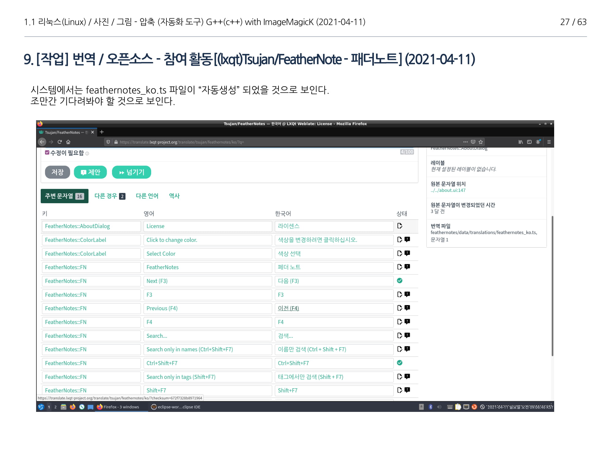 오전에 잠깐 오픈소스 번역 프로젝트(LxQt -> FeatherNotes)에 잠시 참여하였다.