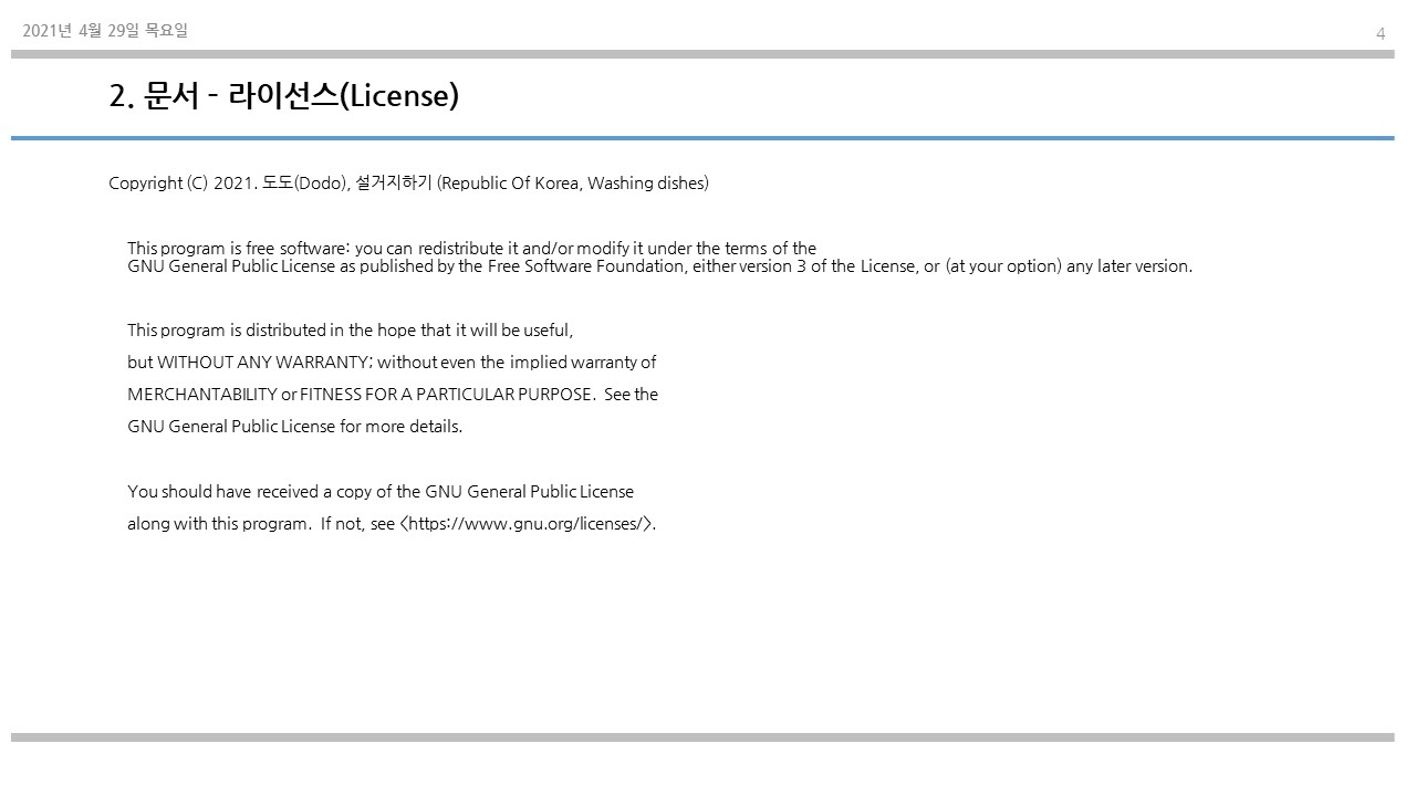 (GNU/GPL v3 Licenses를 적용받는다.)