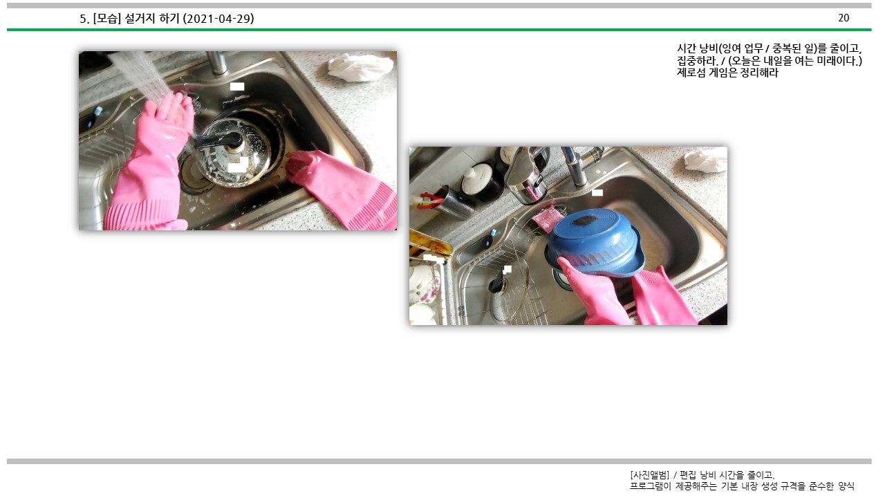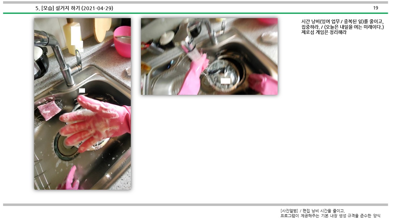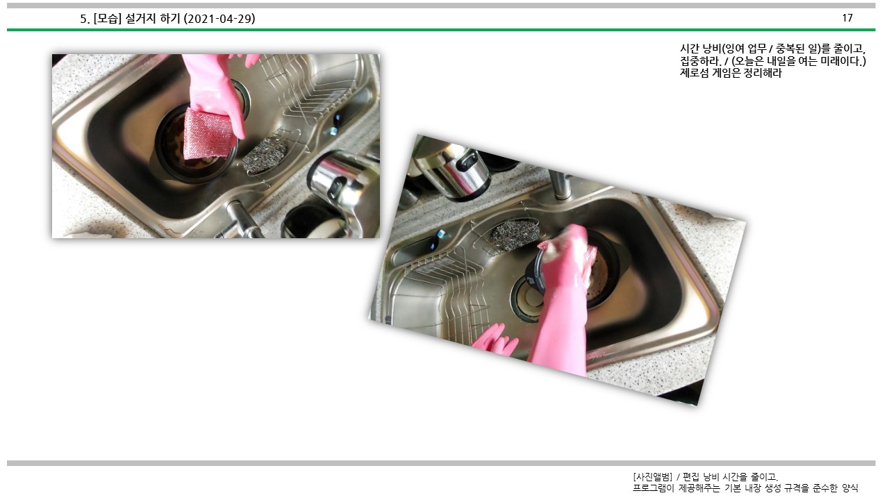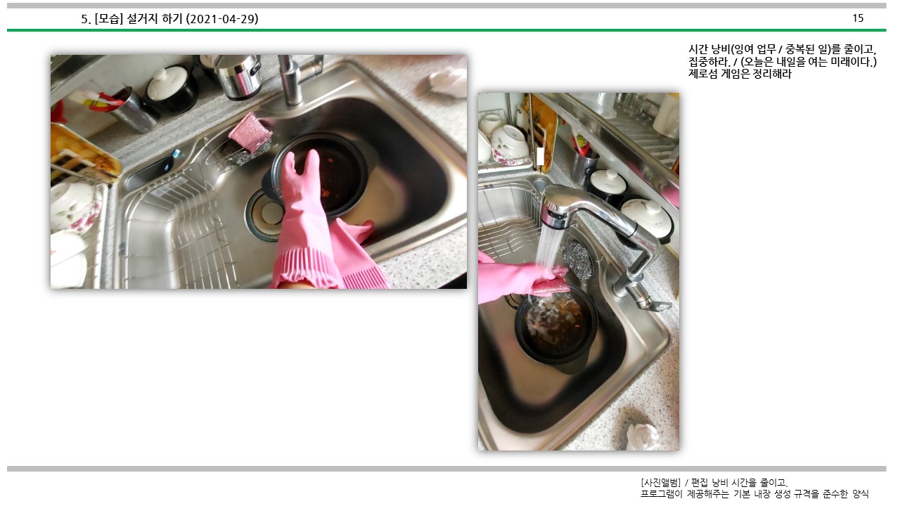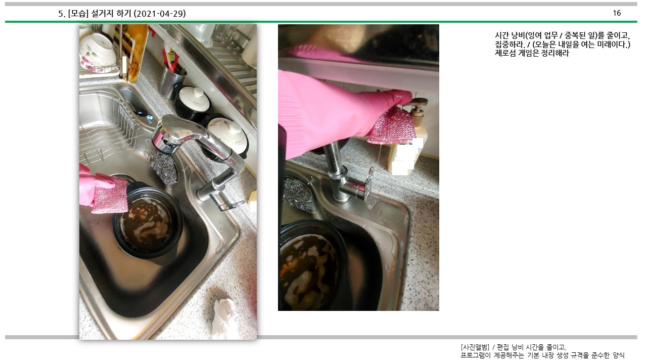 설거지 하는 방법에 대해서 심도적으로 살펴보았다.