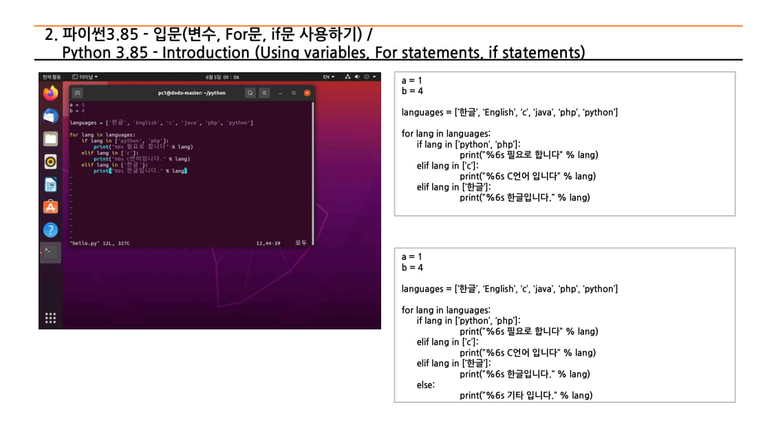 간단한 프로그래밍 입문을 주제로 몇 가지 문법 사용하는 방법으로 실질적으로 구현할 수 있도록 하였다.